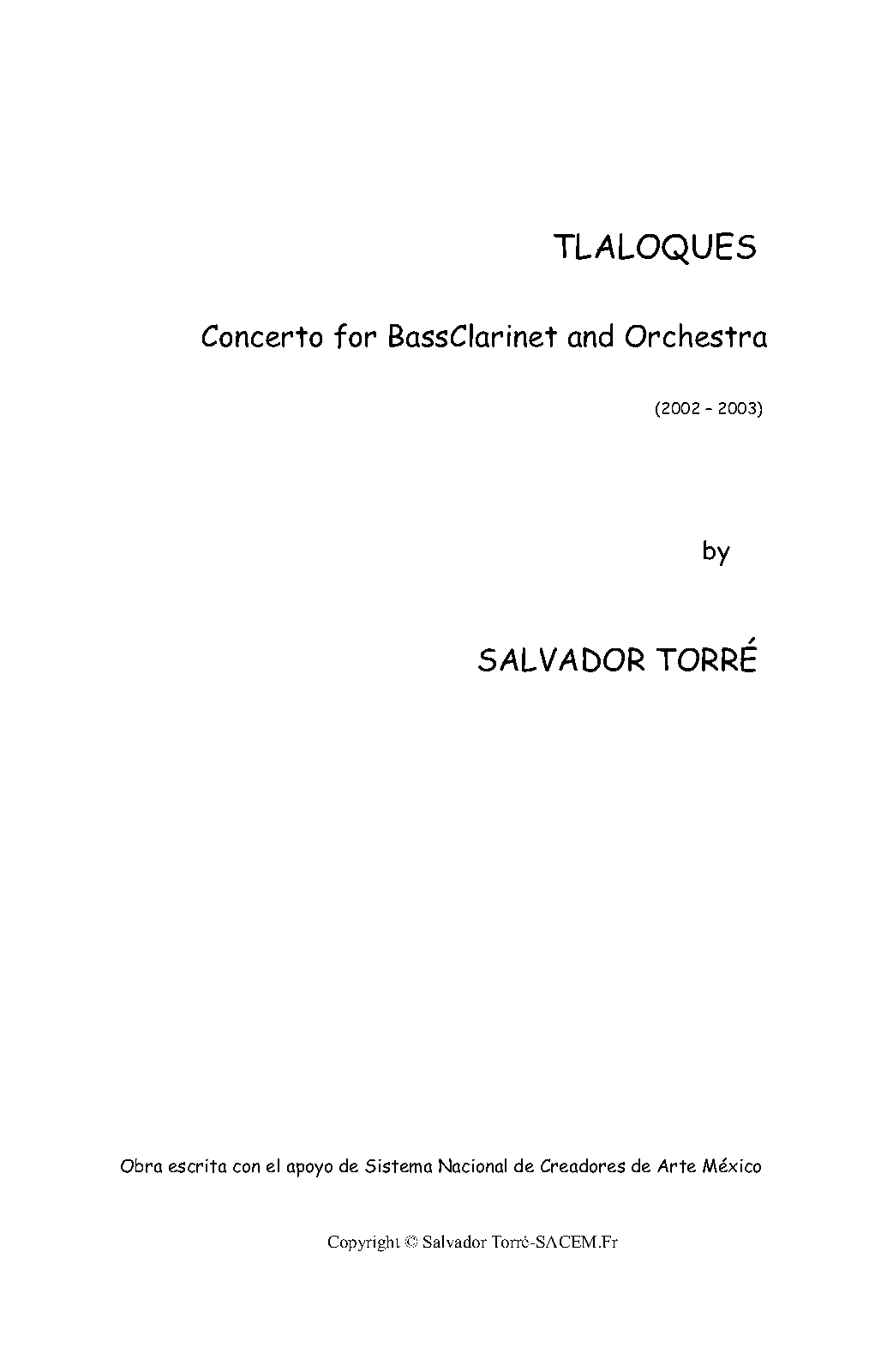 | Work Title | Tlaloques - Concerto for Bass Clarinet and Big Ensemble |