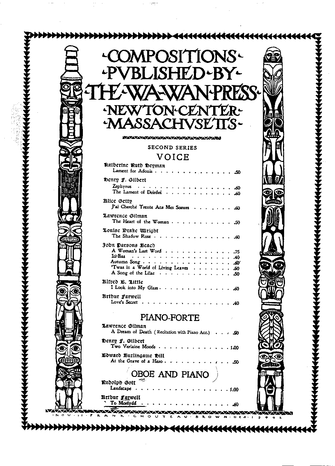First Publication. 1903 – Newton Center: The Wa-Wan Press