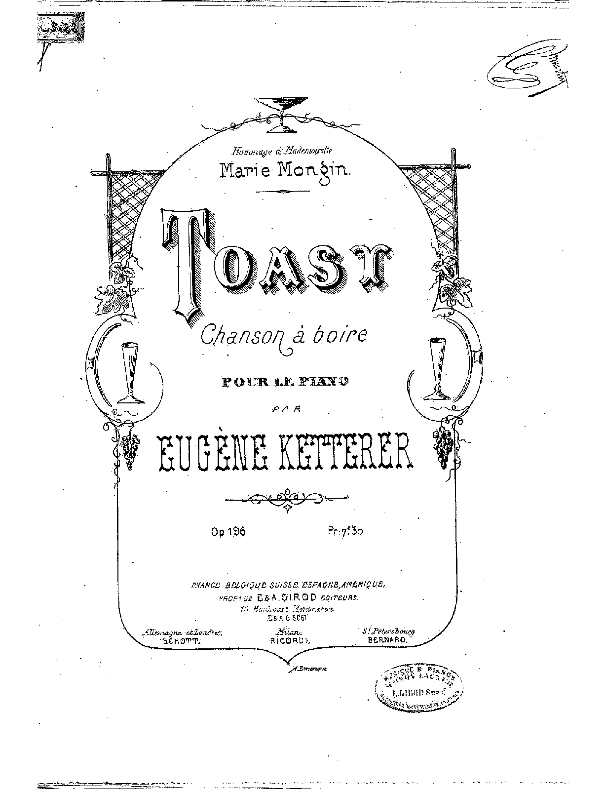 Publisher. Info. Paris: E. et A. Girod, n.d.[1867]. Plate E. et A.G. 5061.
