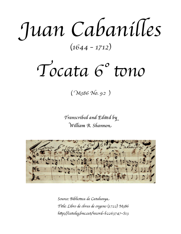 | Work Title | Tocata 6° tono (M386 No.92) |