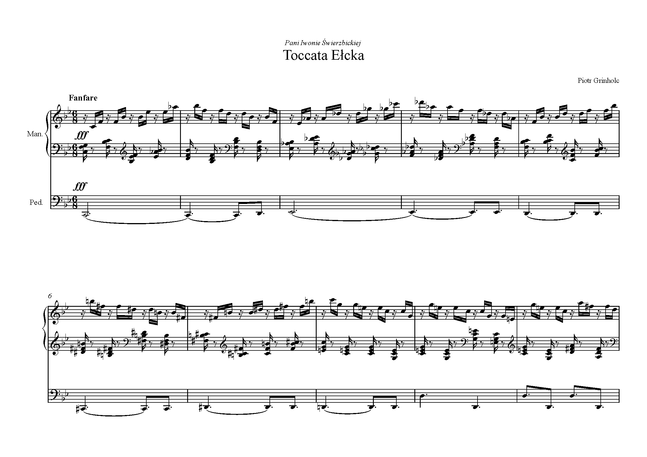 | Extra Information | Piece composed for first concert after renovation the organ in Kościół Rzymskokatolicki Najświętszego Serca Jezusowego in Ełk city (Poland) |