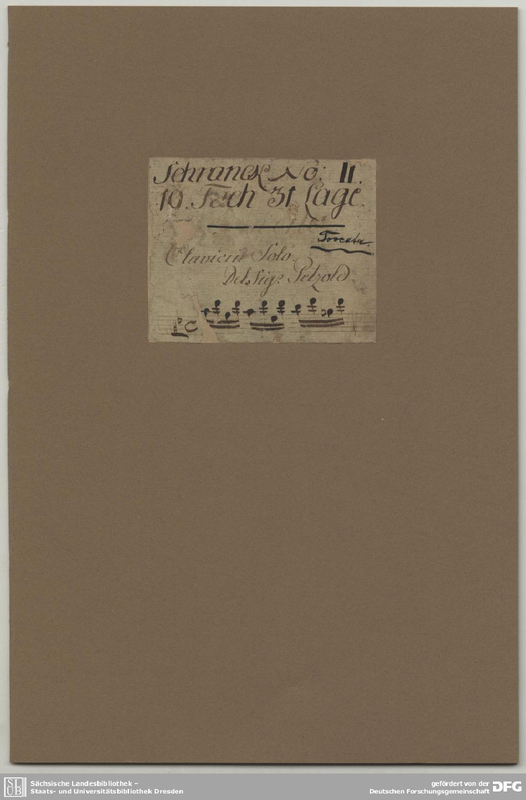 Schrank II coll. Paper damage - a large hole obscures parts of the music on several pages. RISM 212003226 - autograph, date estimated 1720–1733. (Schrank II/19/31.)