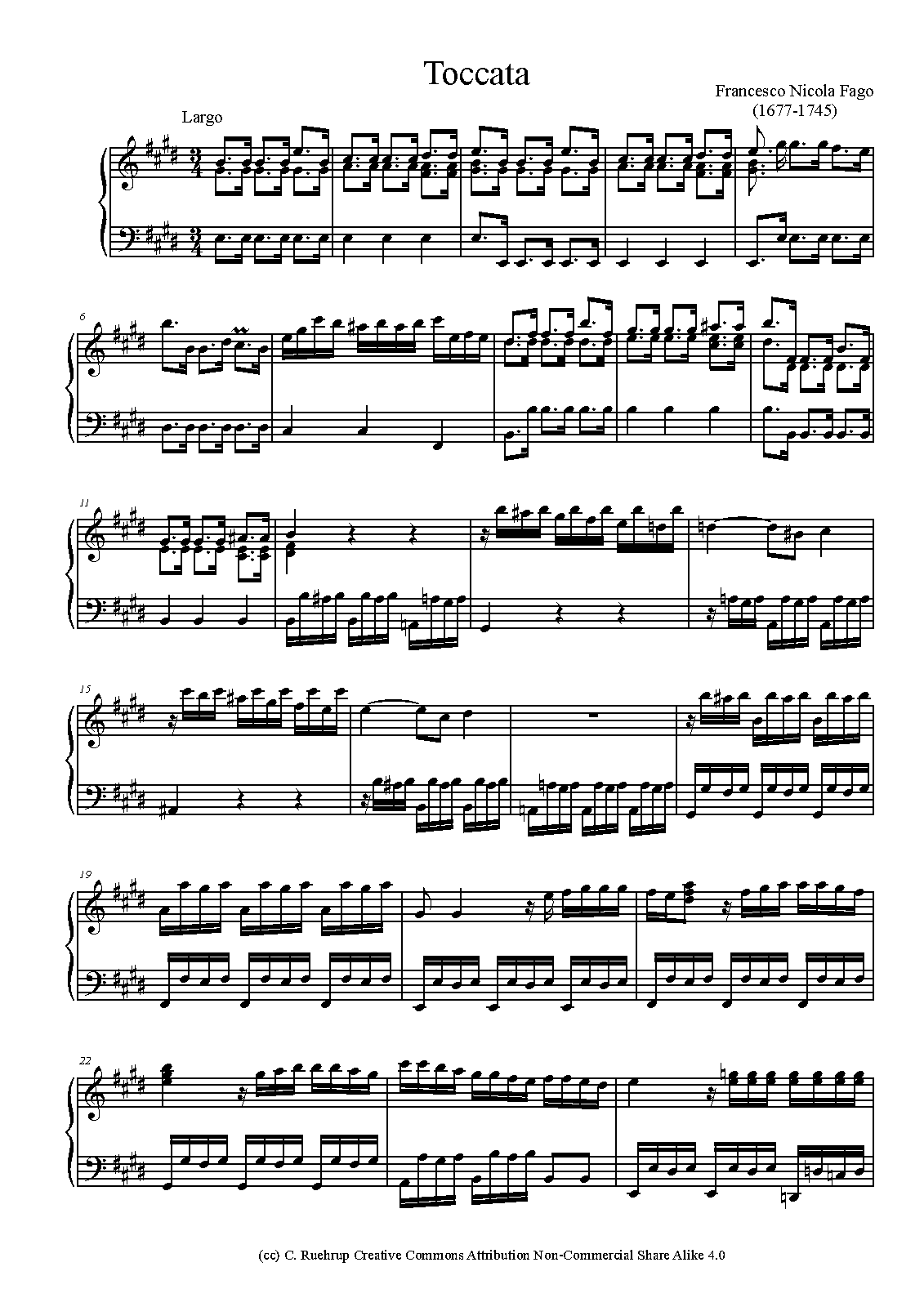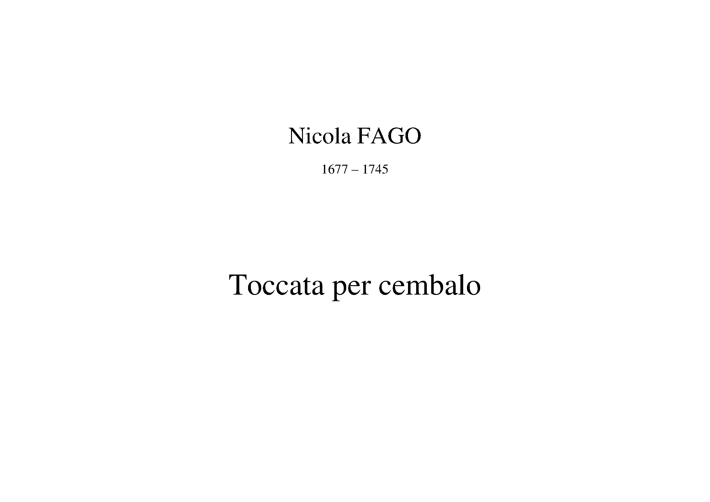 | Extra Information | A toccata by Fago (which may or may not be this particular toccata) was published in 2010 by Padova: Zanibon. |