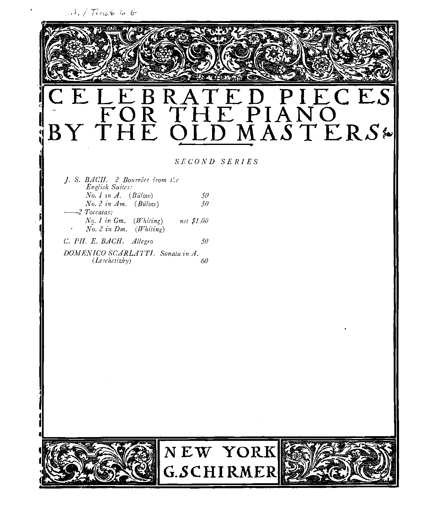 Publisher. Info. Celebrated Pieces for the Piano by the Old Masters (Second Series)