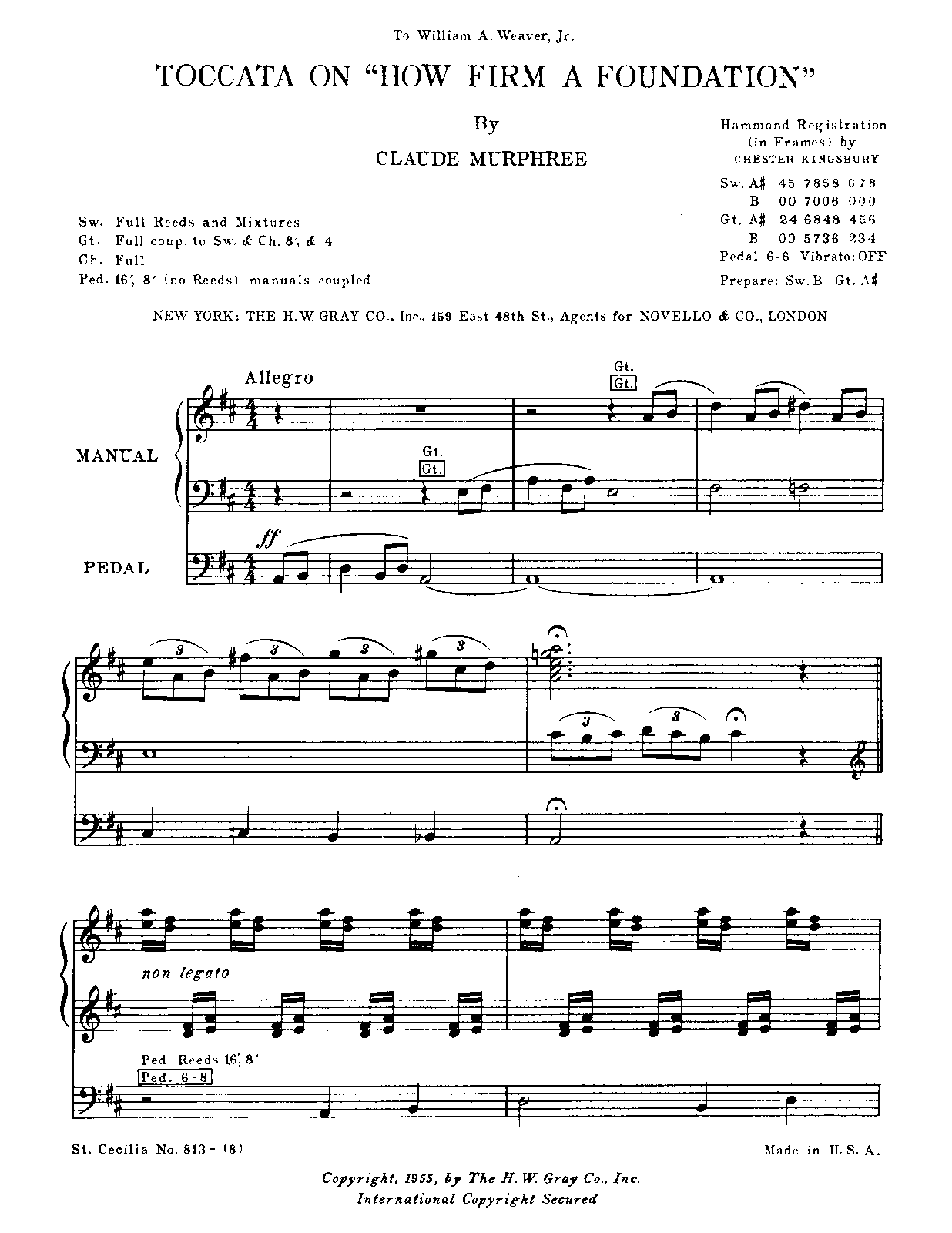 | Work Title | Toccata on 'How Firm a Foundation' |