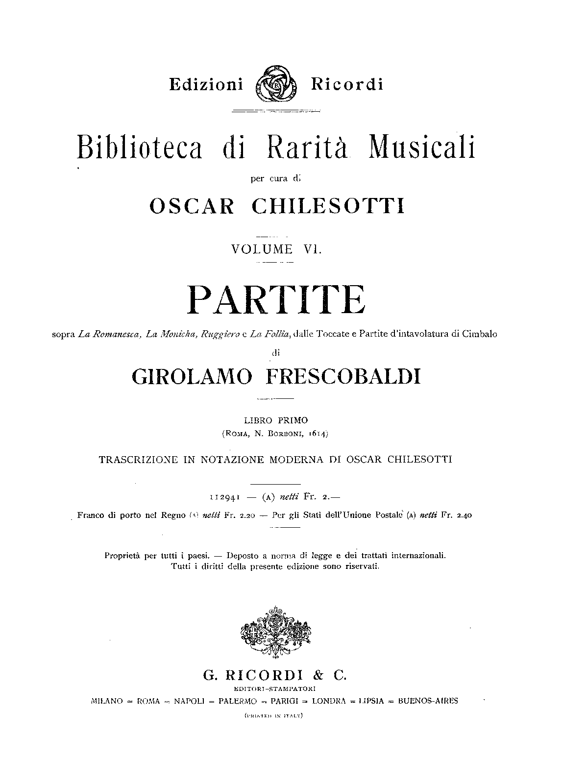 | Extra Information | The 1616 expansion (reissued in 1618 and 1628) was not as extensive as that of 1637 which contained numerous additions (Partite di diverse arie e corrente, balletti, ciaccone, passaghagli...) |