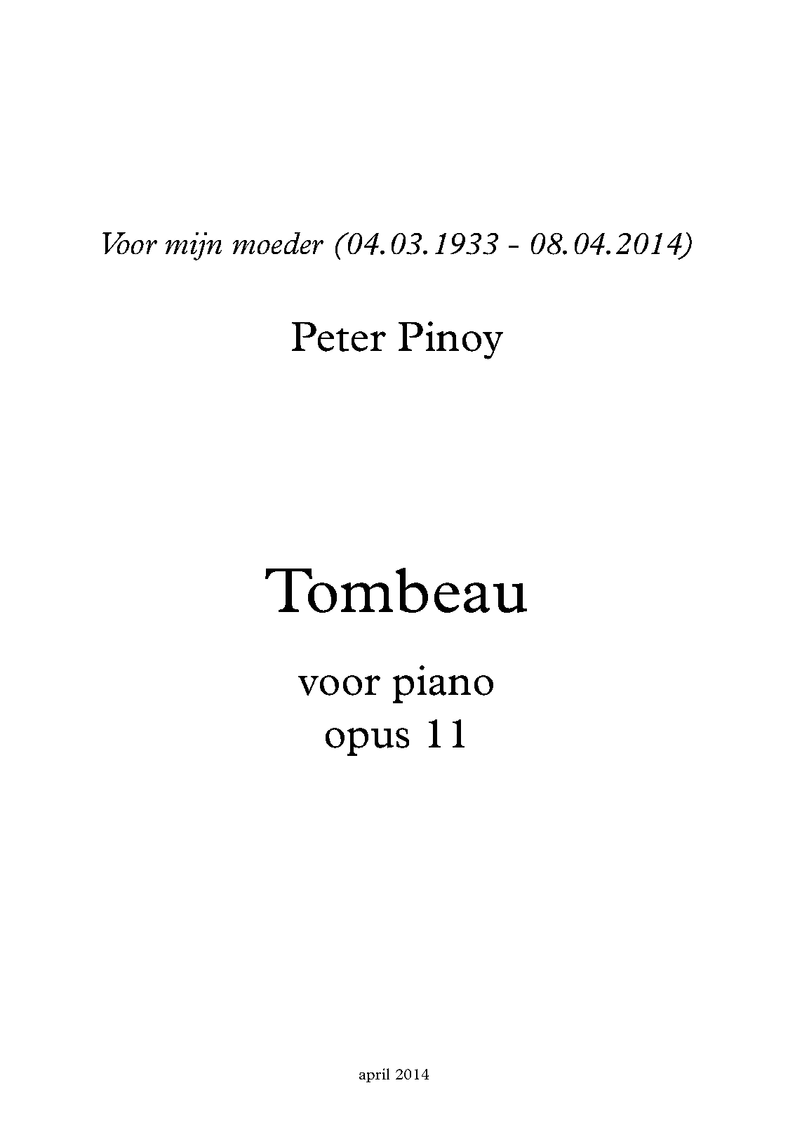 | Work Title | Tombeau for Piano |