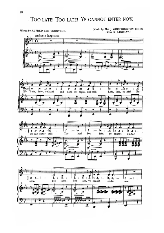 | Work Title | Too late! Too late! Ye cannot enter now |