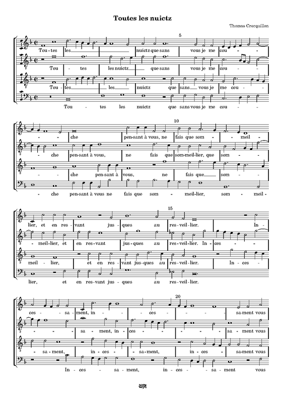 | Alternative. Title | Toutes les nuictz que sans vous je me couche |