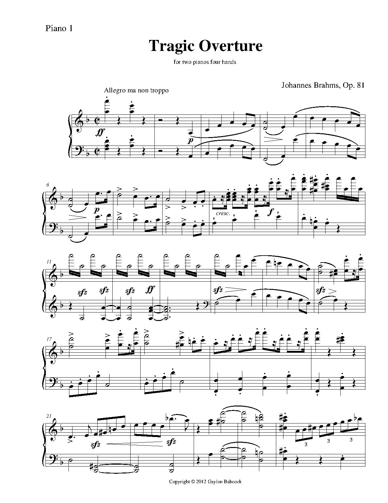 | Name Aliases | Ouverture tragique op. 81; Obertura tragica; Tragic Overture, Op. 81 |