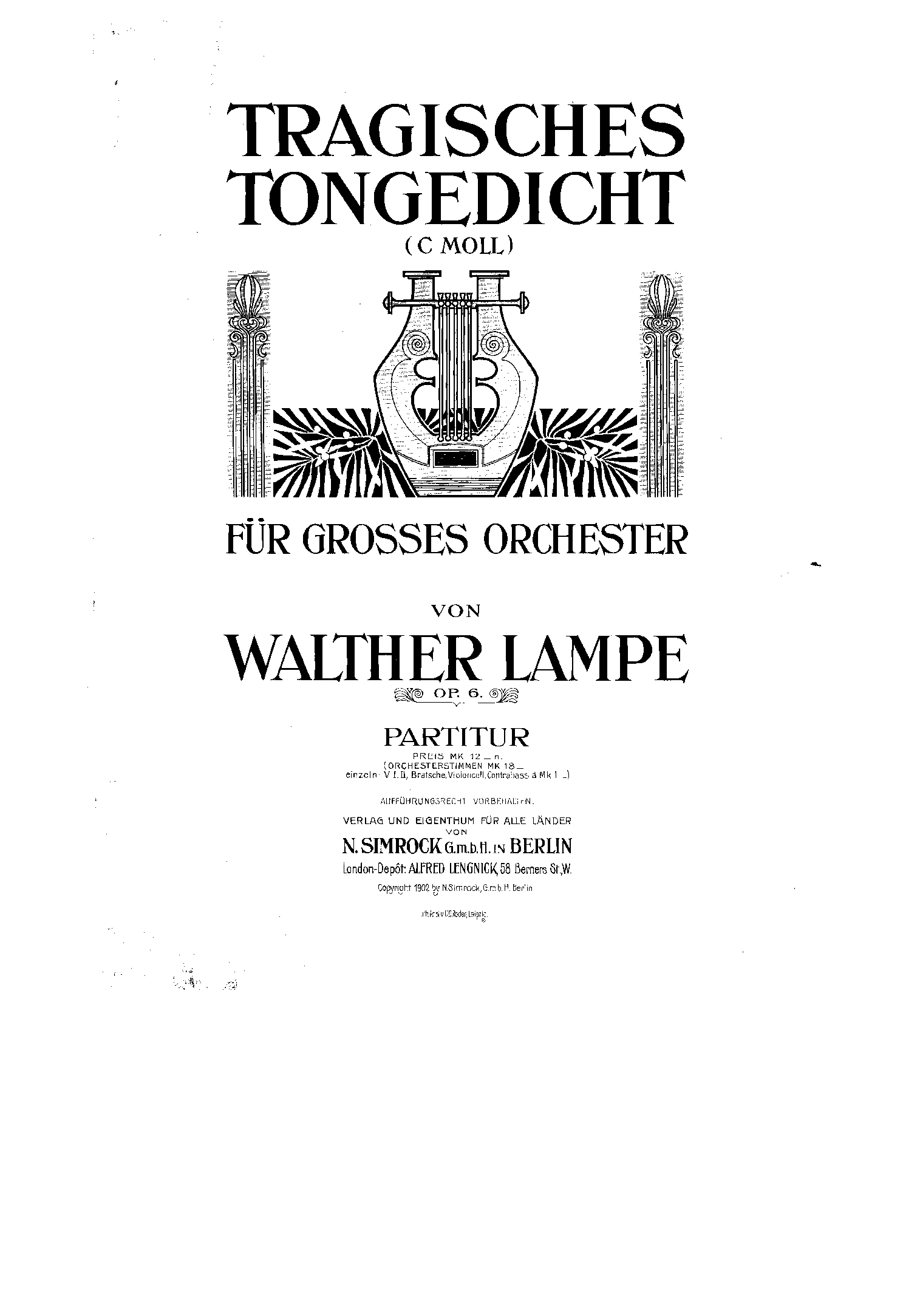 | Alternative. Title | Tragische Tongedicht für Grosses Orchester (C moll) |