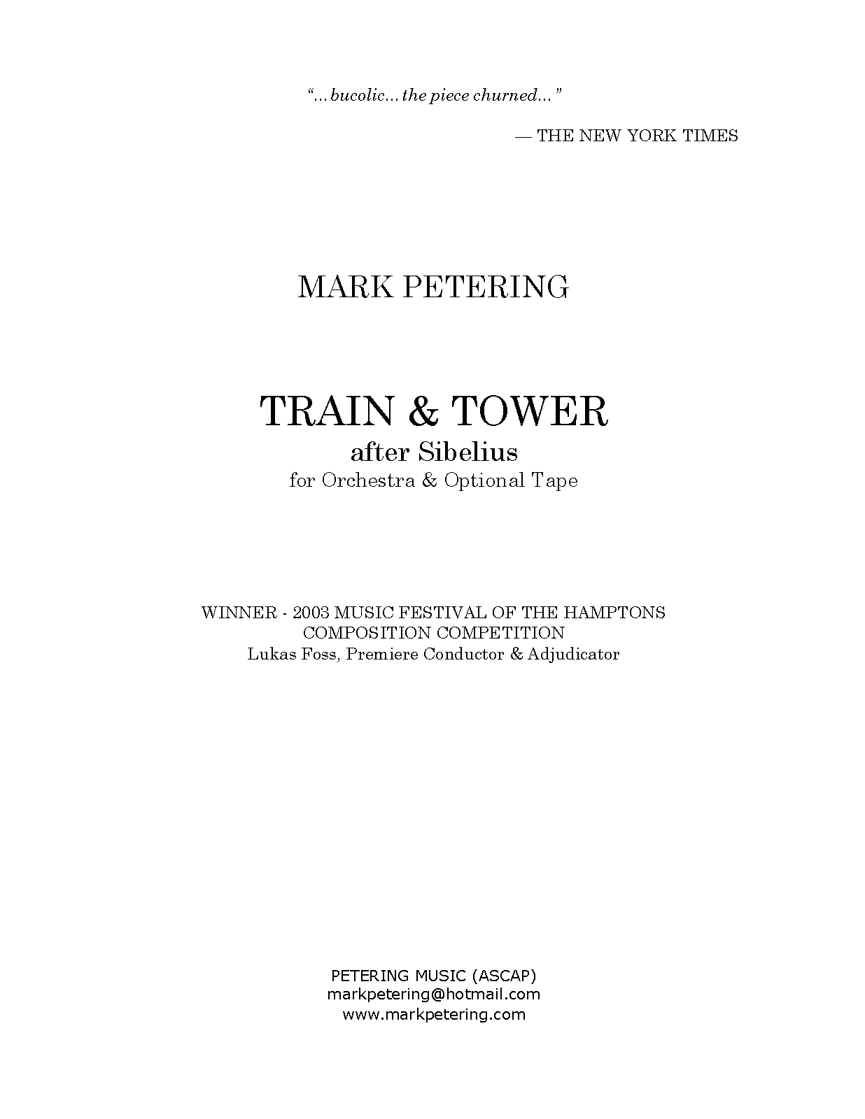 | Extra Information | Optional tape (CD of train sounds). First performance led by Lukas Foss leading the Atlantic Chamber Orchestra at the Music Festival of the Hamptons. Work was winning piece selected by Maestro Foss. Jeremy Nicholas of Gramophone Magazine (UK) named the work a Top 10 All Time for music evoking railways (Oct. 2008). See NY Times for more information. https://www.nytimes.com/2003/07/22/arts/a-train-running-on-time-and-in-key.html |