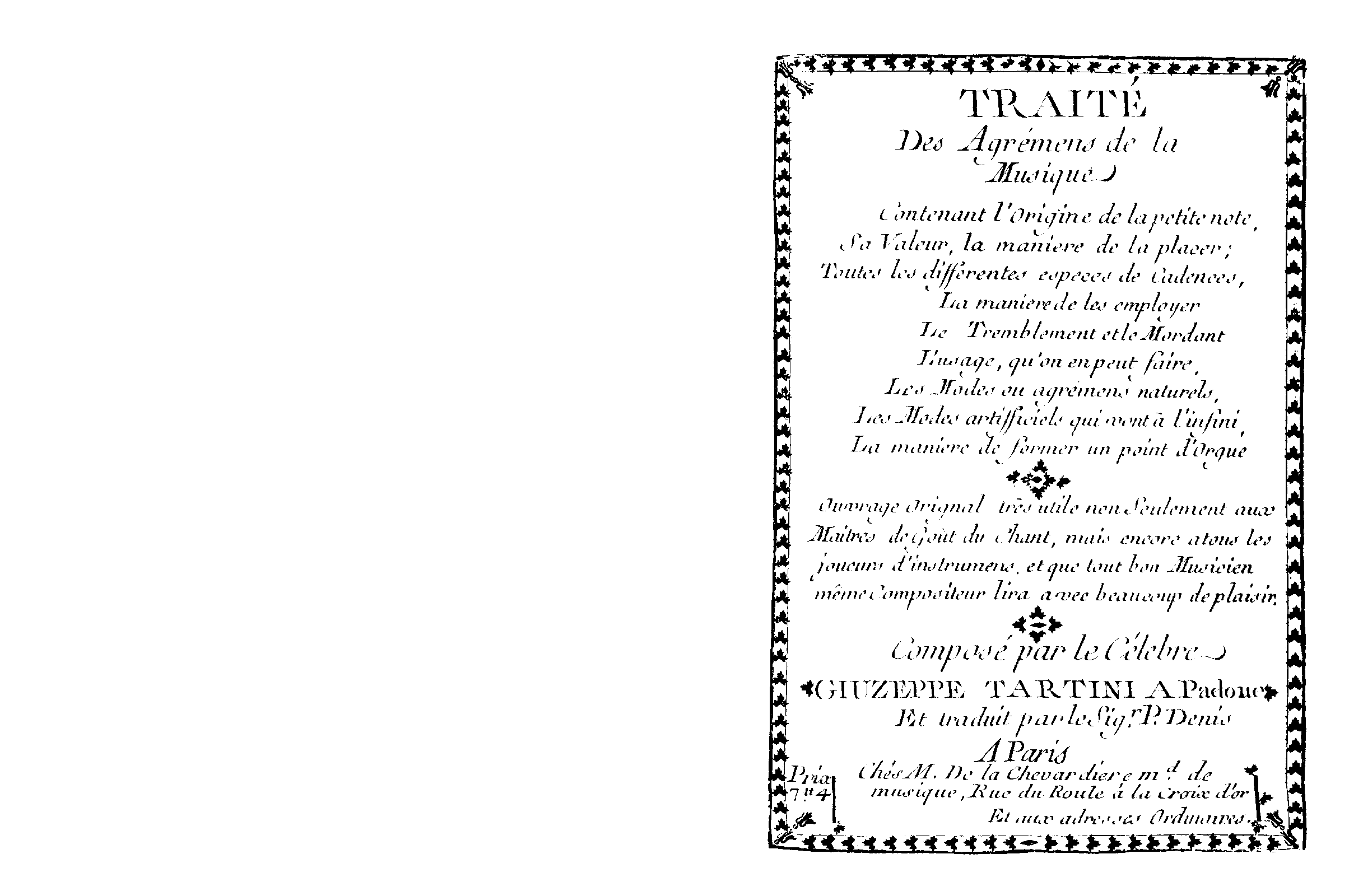 Traité des agrémens de la musique was originally written in Italian and was firstly published in a French translation after the author's death. Original Italian text preserved in two handwritten copies, one of which was written by Giovanni Francesco Nicolai, a pupil of Tartini.