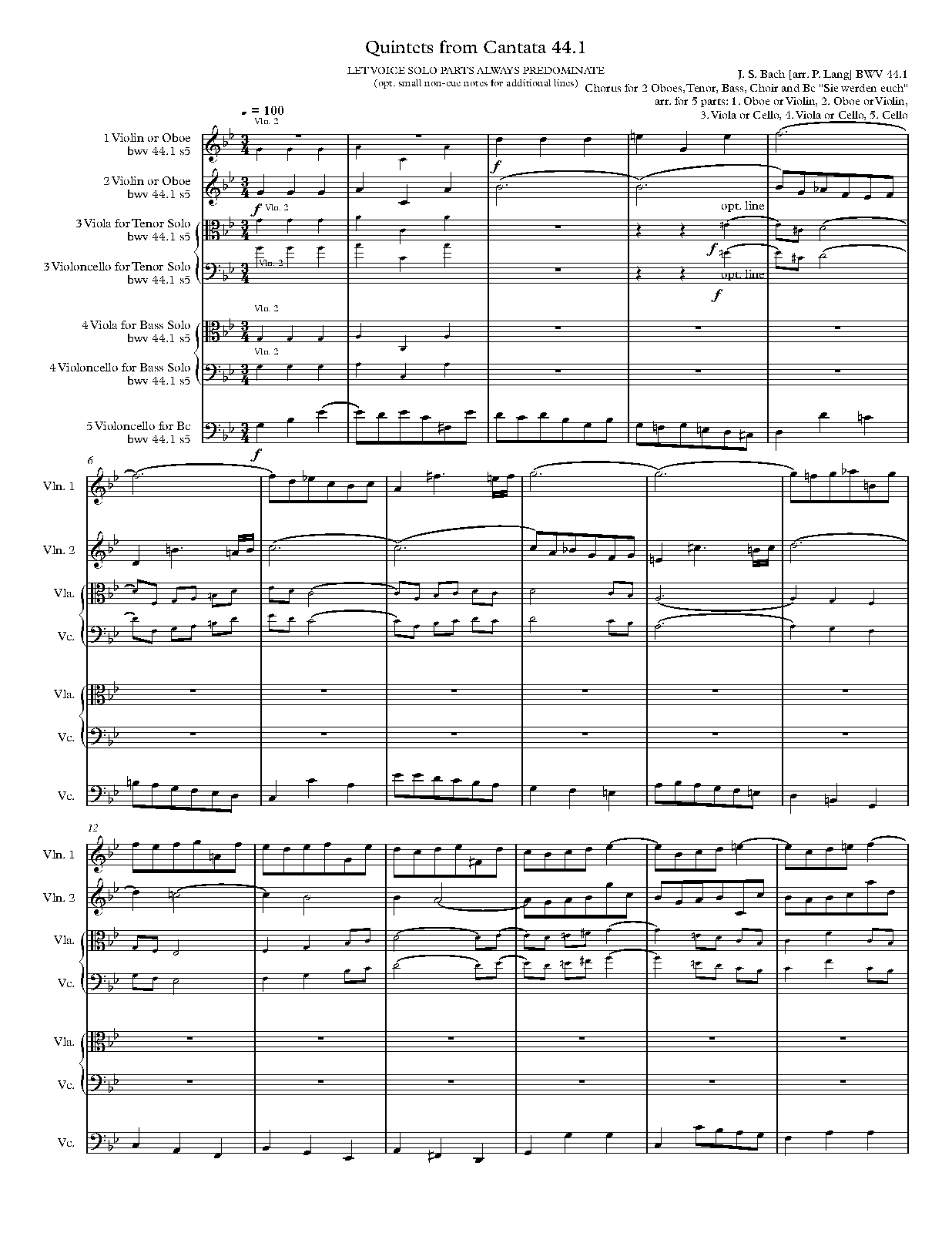 For Quintets: 2 Oboes ad lib. and Strings (Lang)