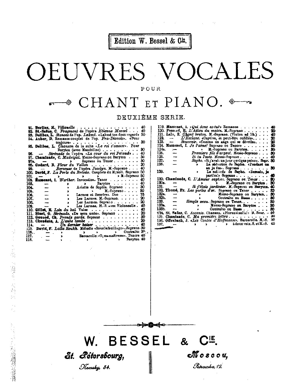 - Musique de scène et Romance: O Dieu! de quelle ivresse embrase-tu mon âme