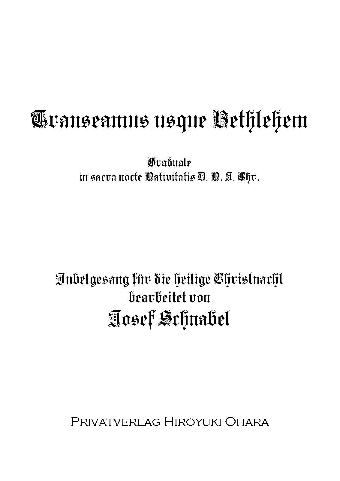 | Alternative. Title | Transeamus usque Bethlehem. In Sancta Nocte Nativitatis D. N. I. Chr. Jubelgesang für die heilige Christnacht. |
