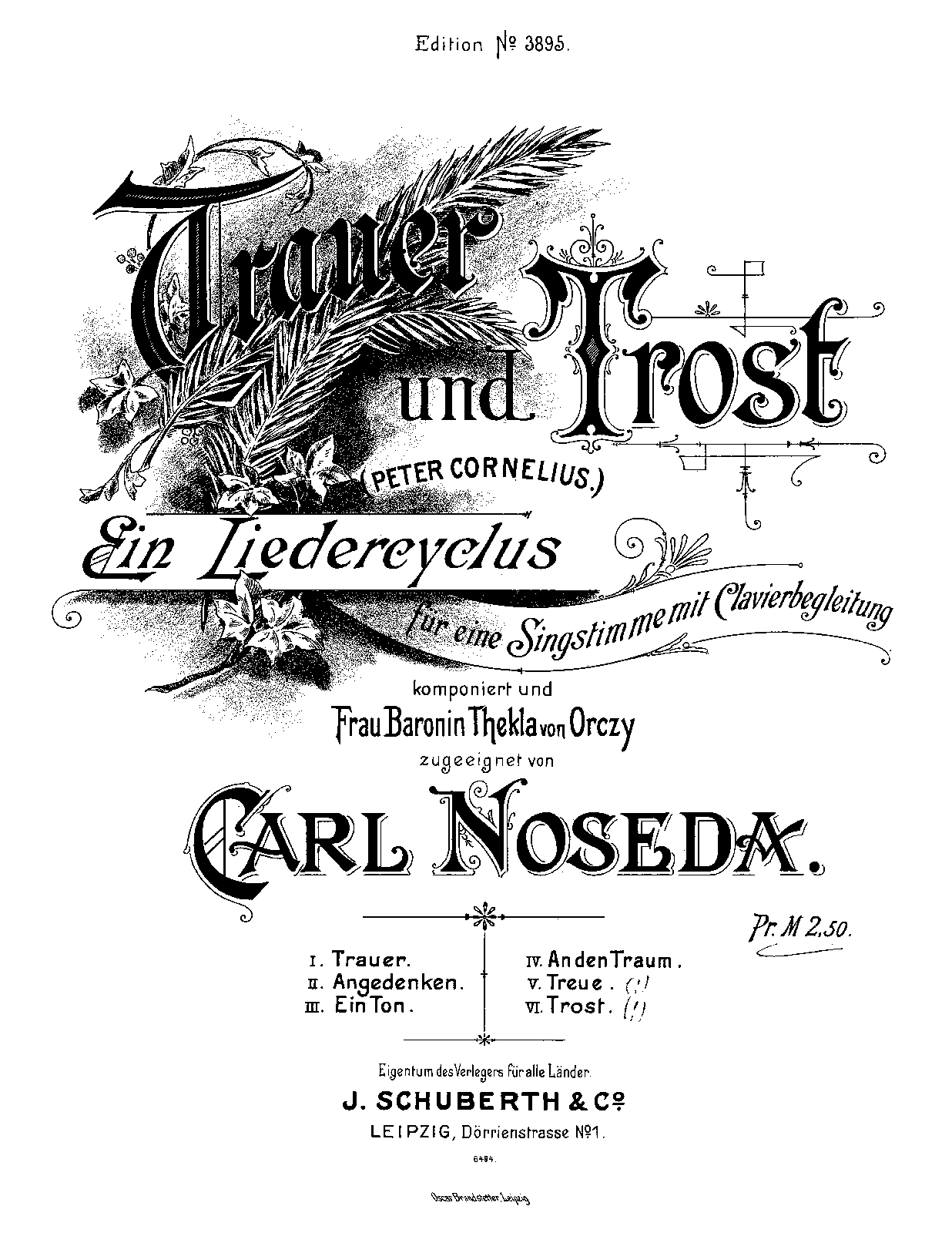| Dedication | Frau Baronin Thekla von Orczy zugeeignet |