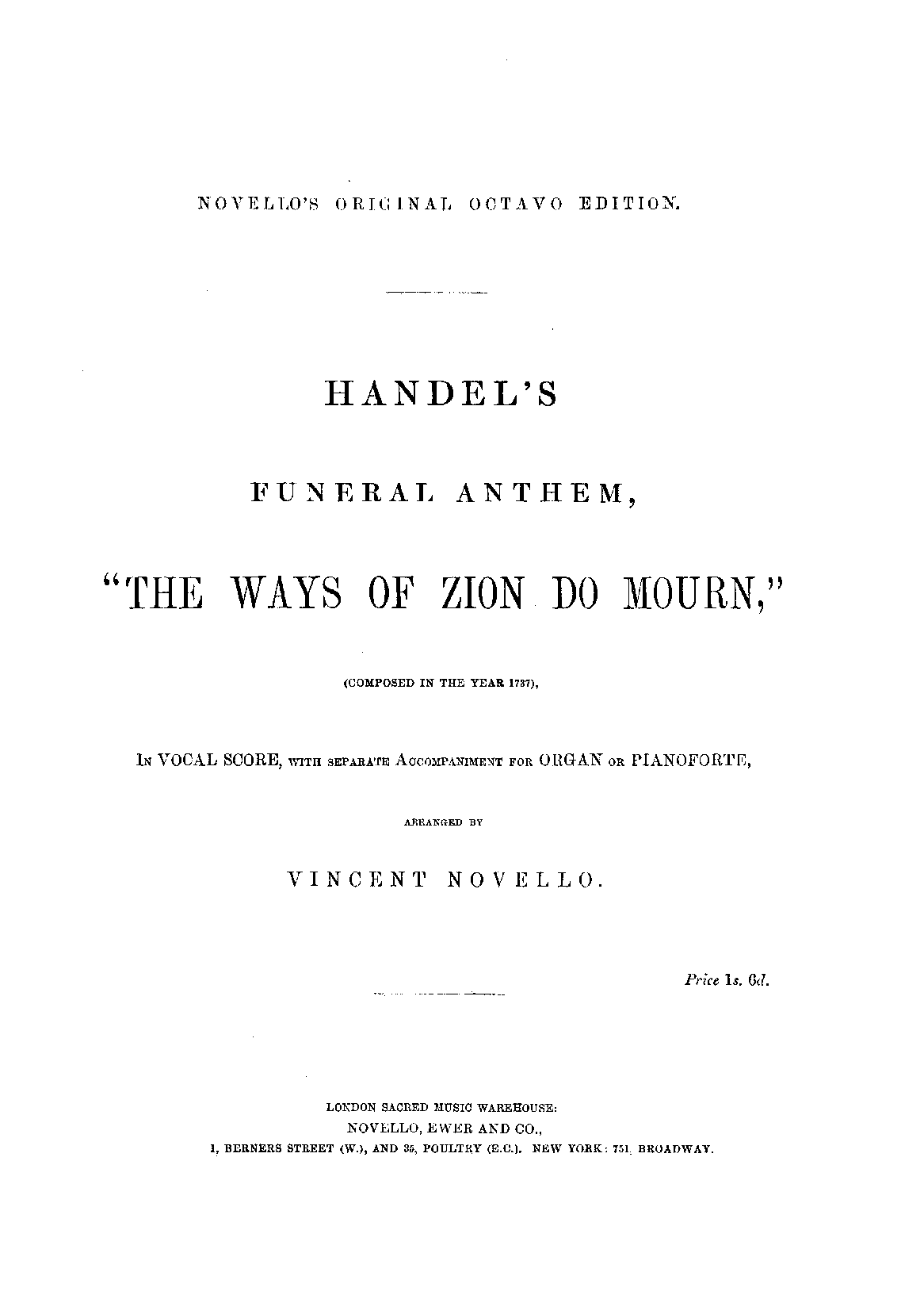 | Name Translations | The Ways of Zion Do Mourn / Funeral Anthem for Queen Caroline; The ways of Zion do mourn; シオンへ至る道は悲しみ |