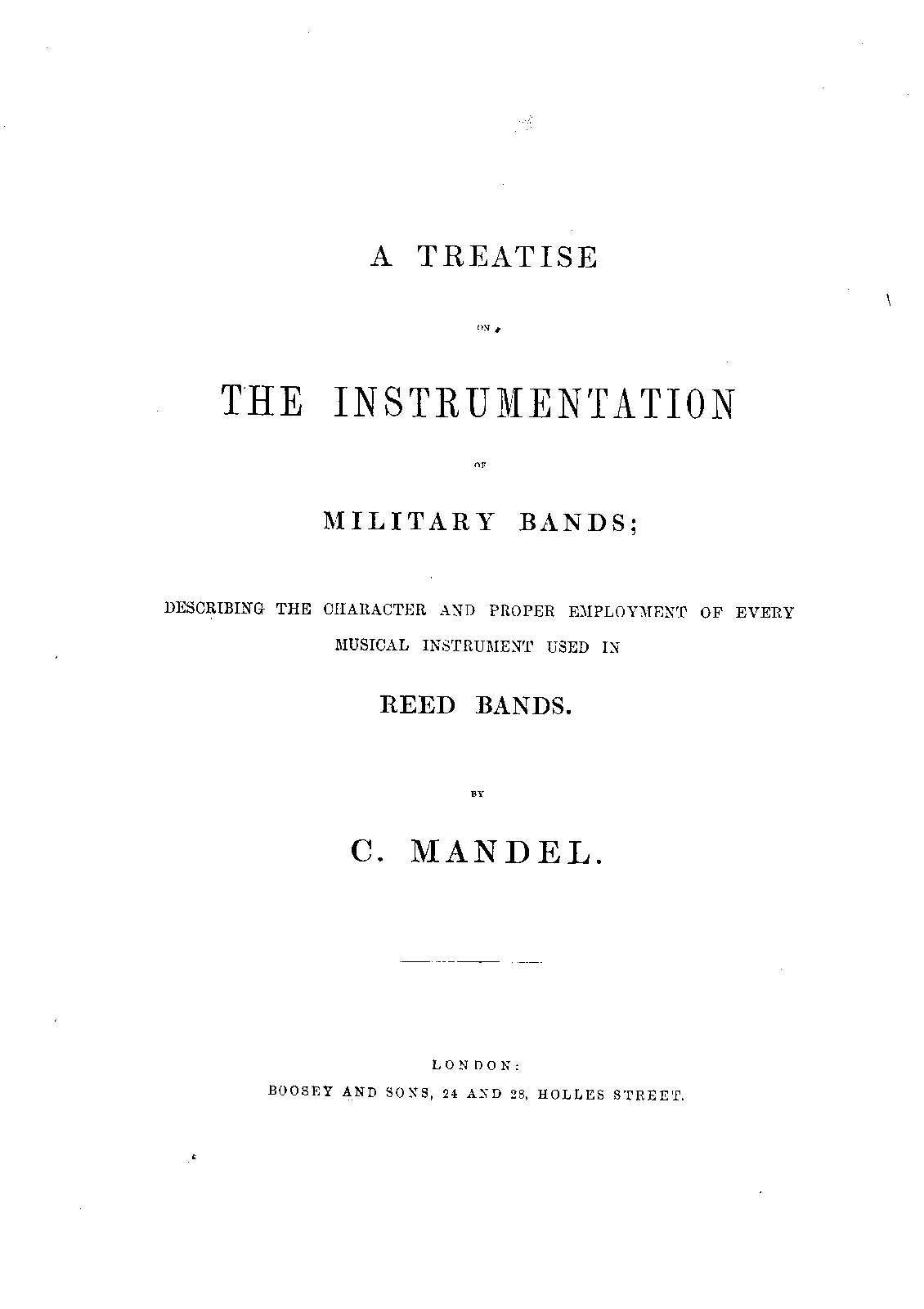 | Work Title | Treatise on the instrumentation of military bands ; describing the character and proper employment of every musical instrument used in reed bands |