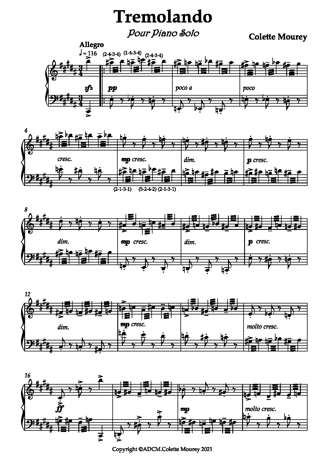 Étude Technique (tremolando "leggiero" combinant trois/quatre doigts différents et thème médian polyphonique à la rythmique irrégulière) ; et Pièce de Concours.