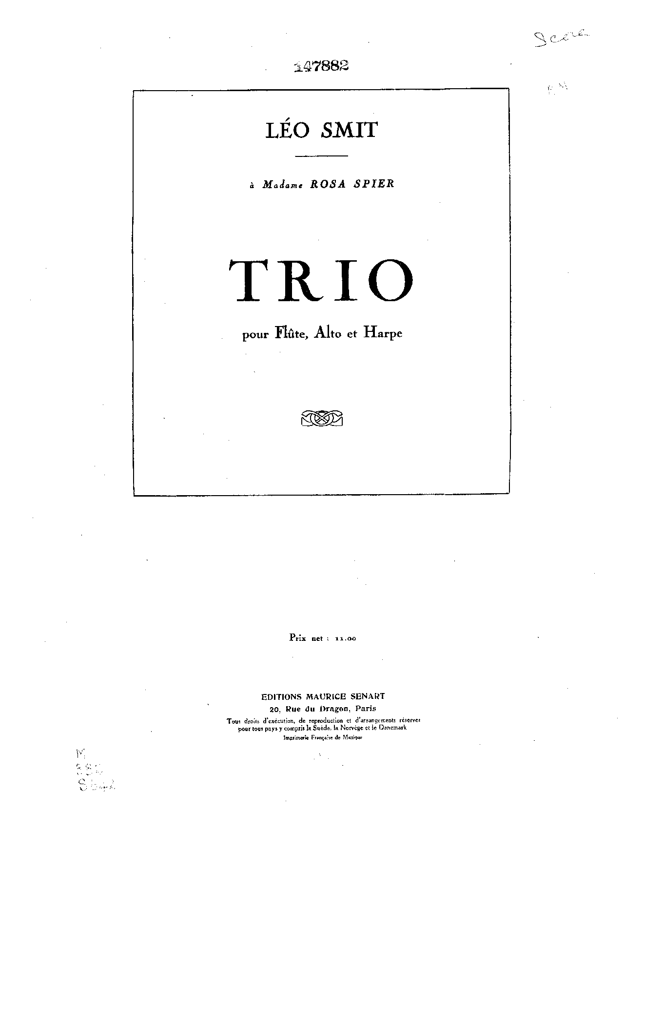 | Genre Categories | Trios; For flute, harp, viola; Scores featuring the flute; |