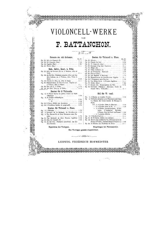 Battanchon's opus 38 is either his cello trio no.1, or his cello and piano sonata, or was given to both works.
