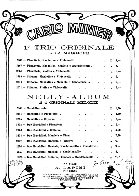 | Genre Categories | Trios; For mandolin, cello, piano; Scores featuring the mandolin; |