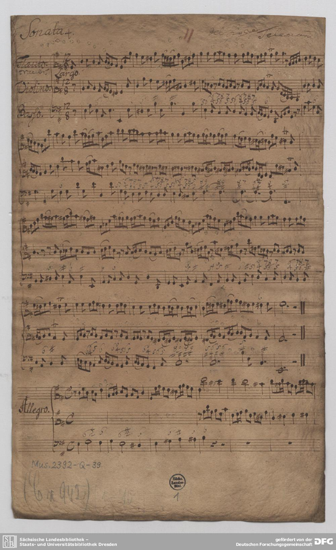 Misc. Notes Manuscript says flauto traverso, violino but Kolneder preferred 2 violins. There is an error in bar 10 of the continuo part: each G should be G#.