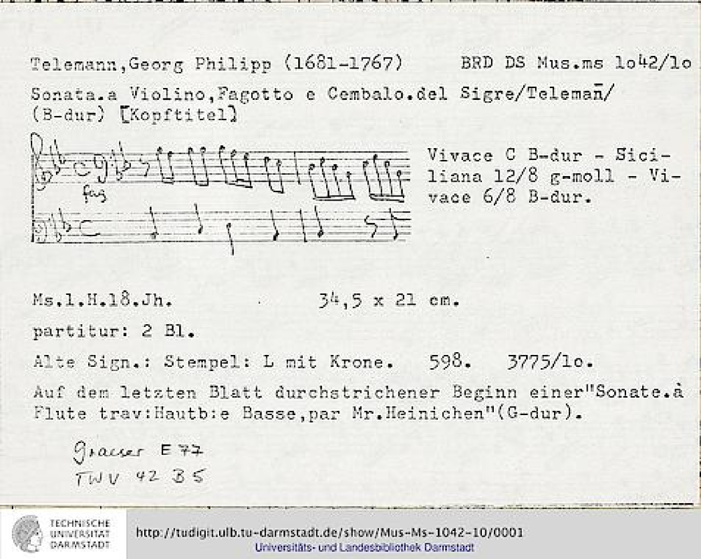 Opus/Catalogue NumberOp./Cat. No. TWV 42:B5