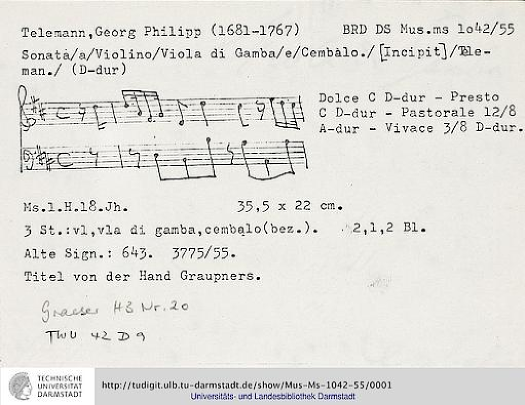 Opus/Catalogue NumberOp./Cat. No. TWV 42:D9