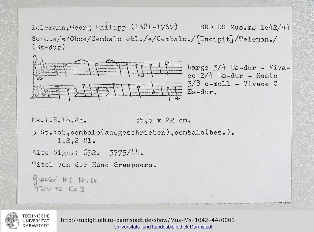 Opus/Catalogue NumberOp./Cat. No. TWV 42:Es3