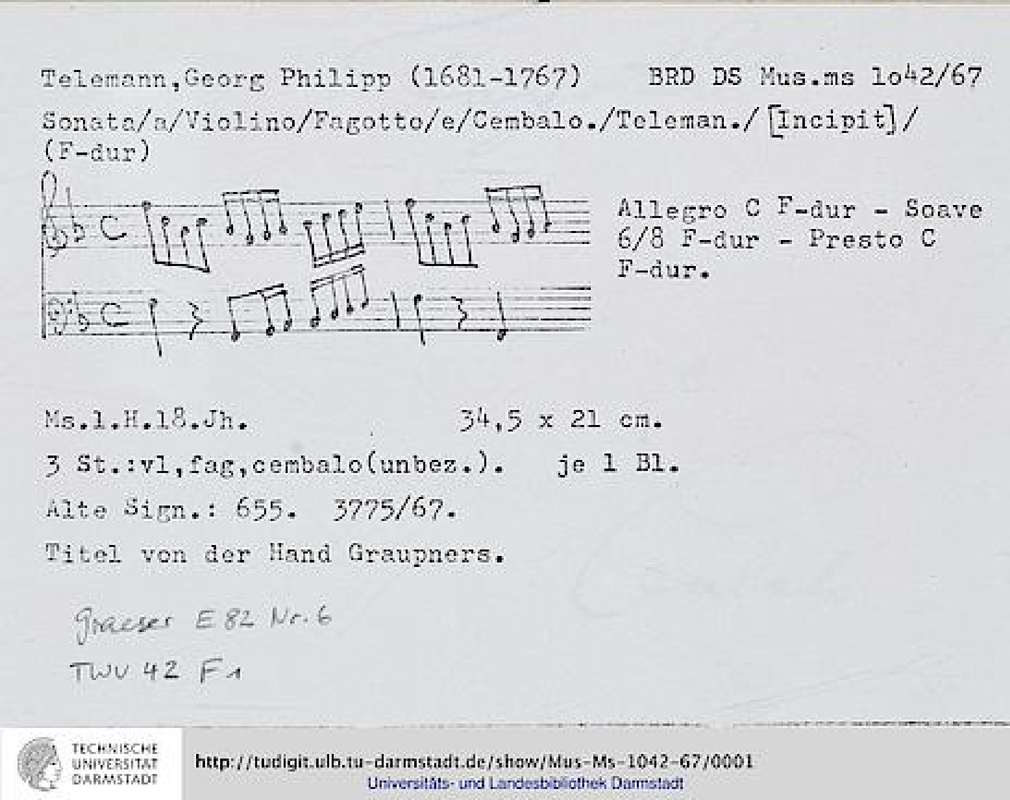 | Opus/Catalogue NumberOp./Cat. No. | TWV 42:F1 |