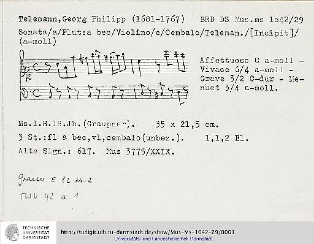 Opus/Catalogue NumberOp./Cat. No. TWV 42:a1