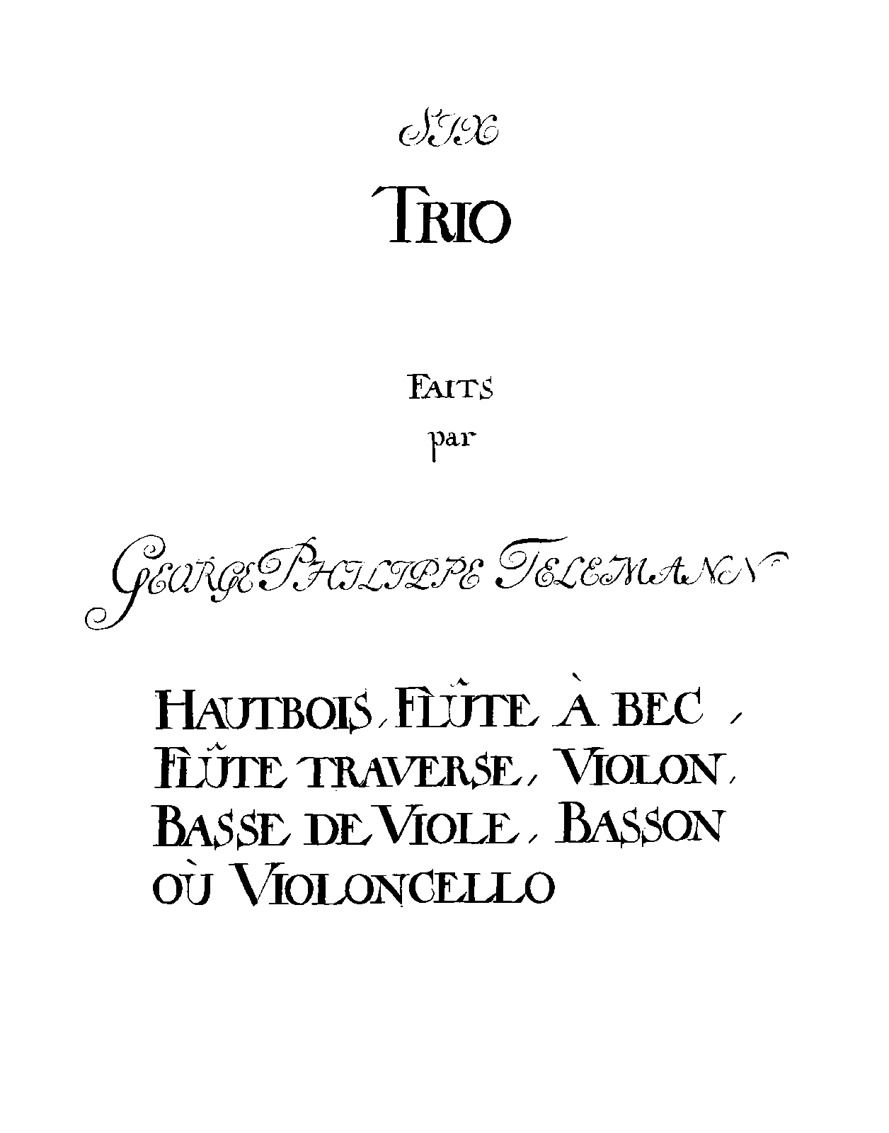 TWV Catalog Trio sonata section, in key order (in French)