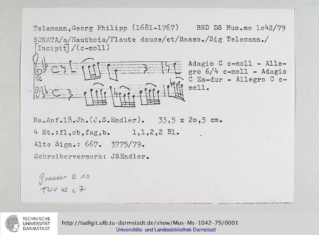 Opus/Catalogue NumberOp./Cat. No. TWV 42:c7