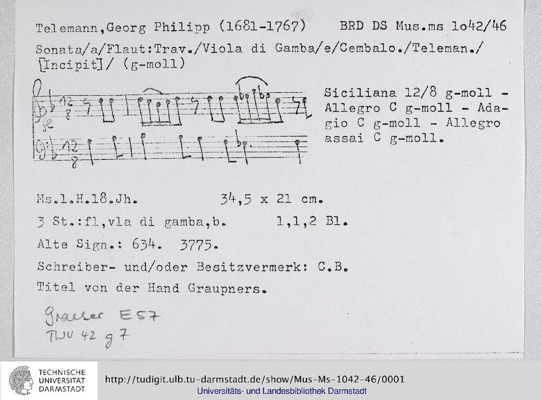Opus/Catalogue NumberOp./Cat. No. TWV 42:g7