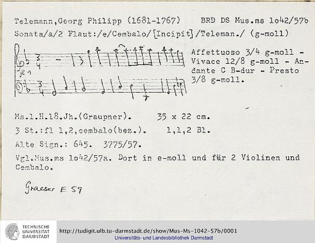 | Opus/Catalogue NumberOp./Cat. No. | TWV Anh. 42:g |