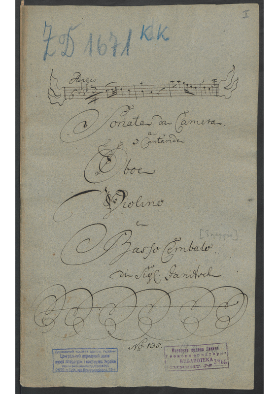 | Alternative. Title | Sonata da Camera a 3 Cantaride. Oboe, Violino e Basso Cembalo |