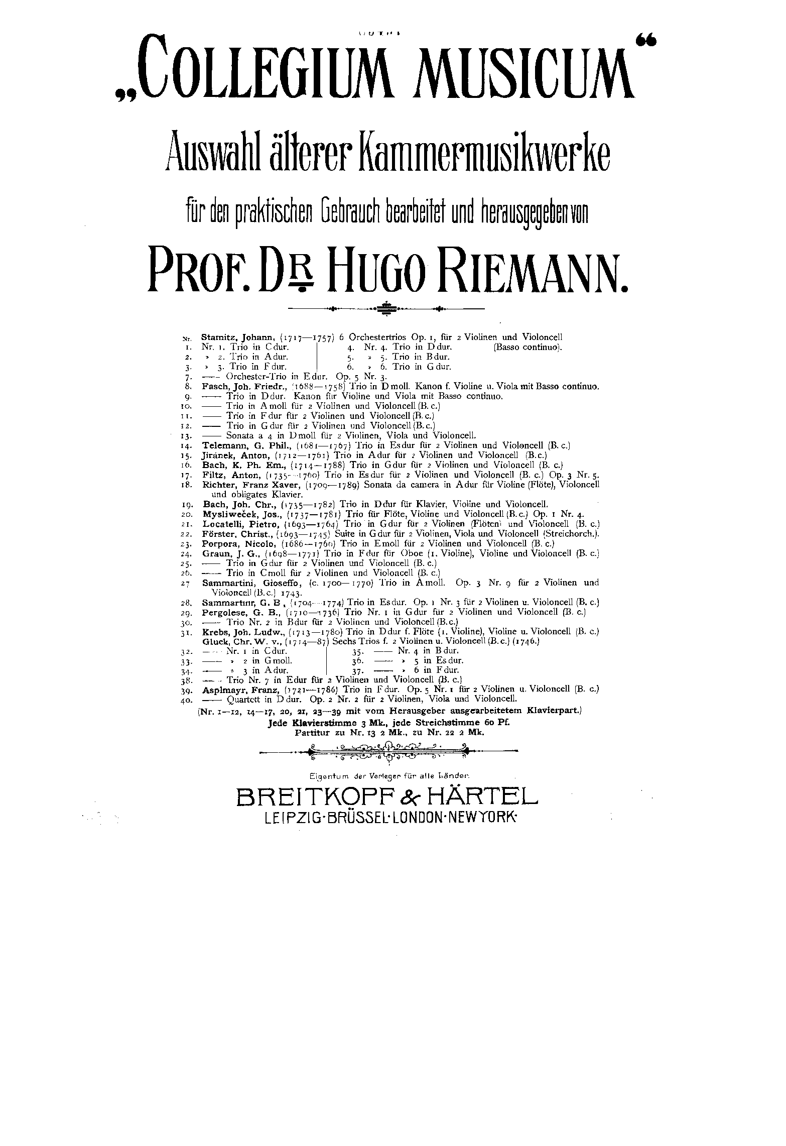 | Extra Information | *According to Grove, there are several Op.1 issues. Six sonatas for flute, violin and continuo (trio sonatas) were issued between ca.1775 in Florence, 4 of them reprinted as "Op.1" in Amsterdam in 1780. The original Op.1 was issued in as 6 sonatas for 2 violins and continuo in 1768 in Paris. Of course the later item mentioning flute could be a simple change in terminology. Nothing mentioned as "Op.1" in Grove mentions cello as a separate instrument apart from continuo. |
