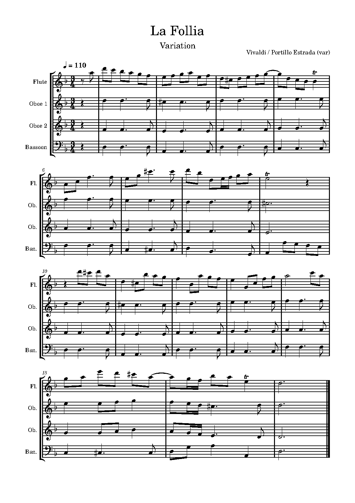 Name Aliases La Follia; Follia; Sonata (Variotionen) d-moll; Sonata n. 12 in d-minor La Follia (RV 63); Folia variations; La Folia variations; Vivaldi, Antonio, 1678-1741. Trio sonatas, violins (2), continuo, op. 1. No. 12