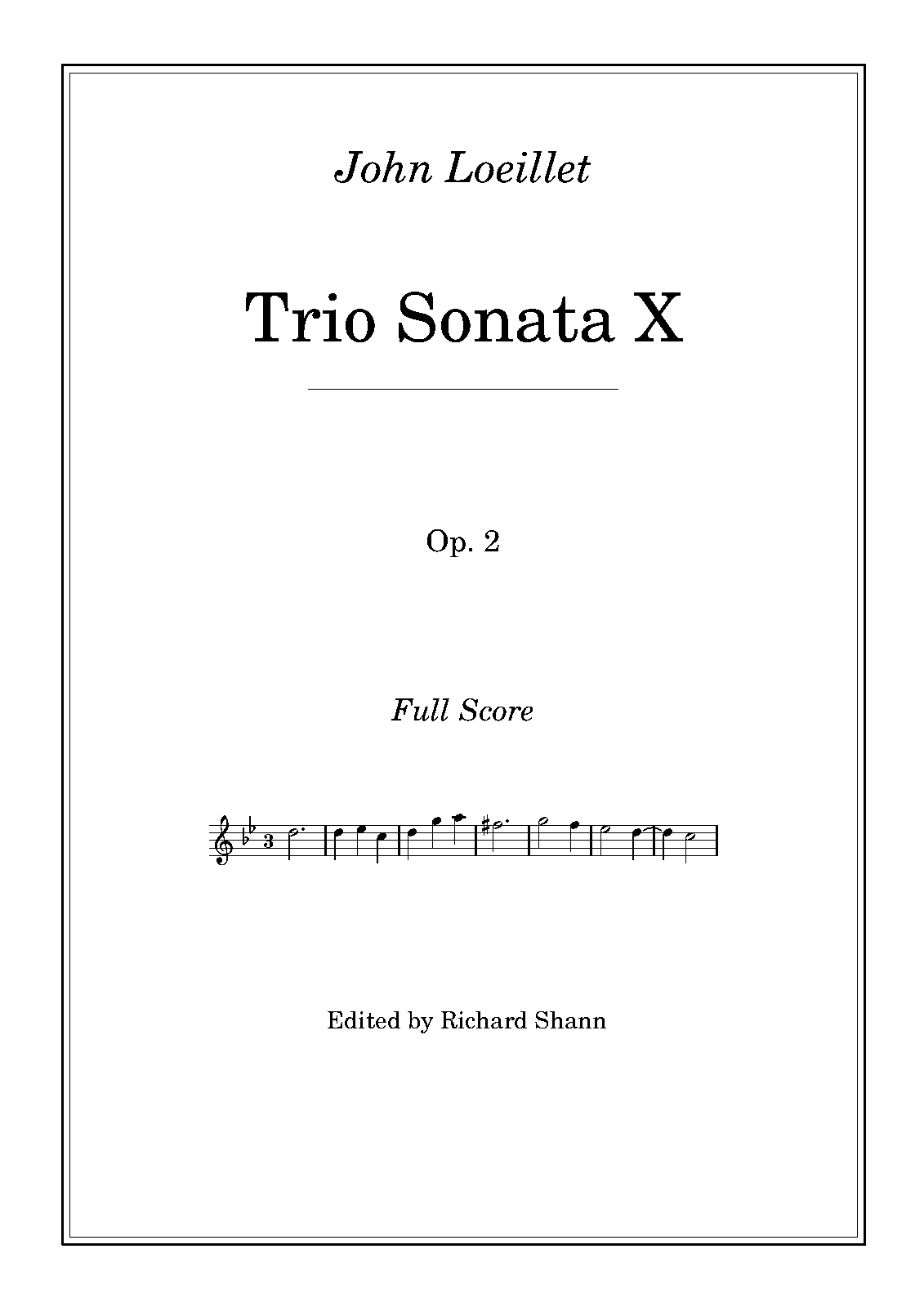 | First Publication. | 1725 ca. in 12 Trio Sonatas, Op.2 (No.10) |