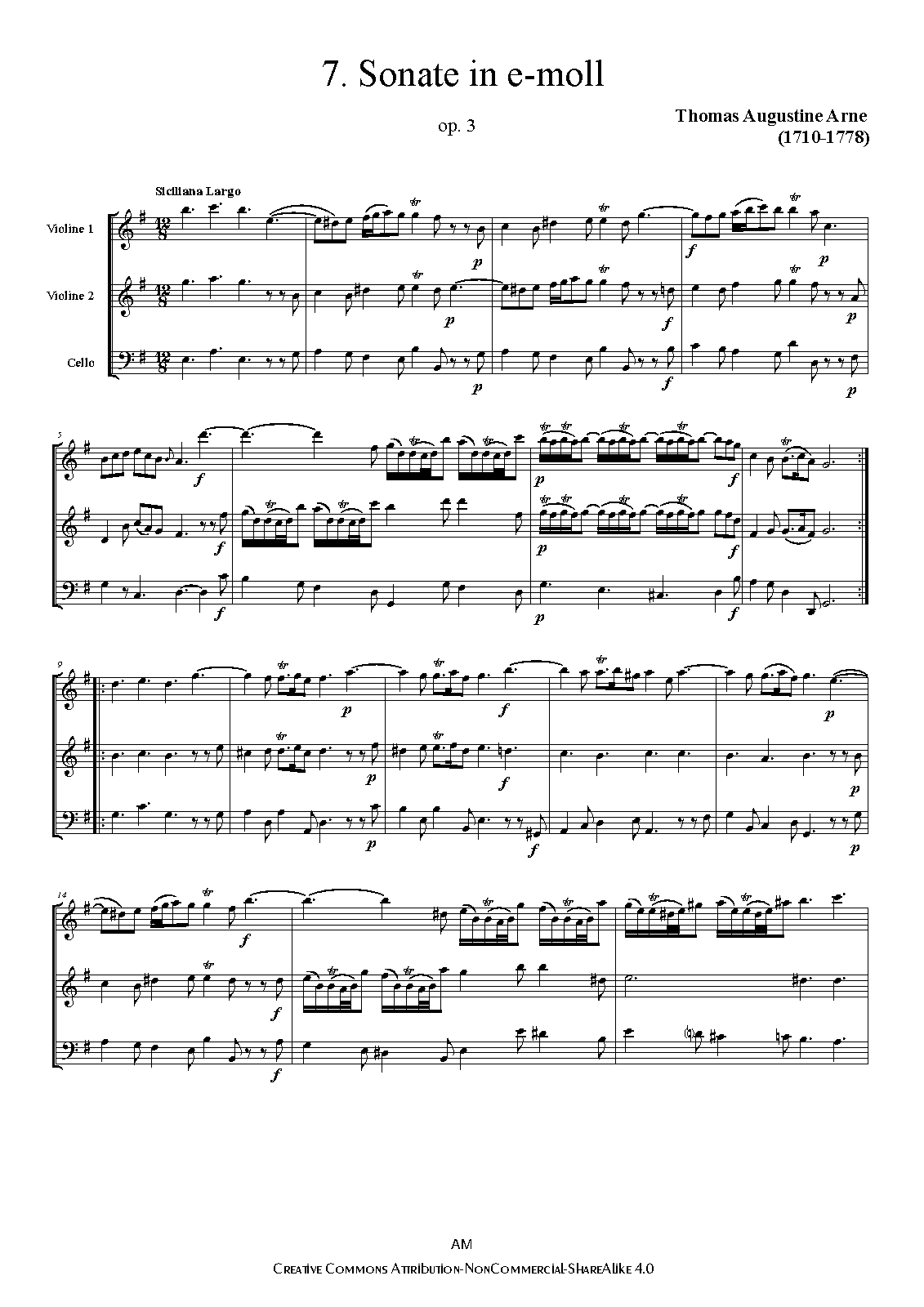 | First Publication. | 1757 in 7 Trio Sonatas, Op.3 (No.7) |