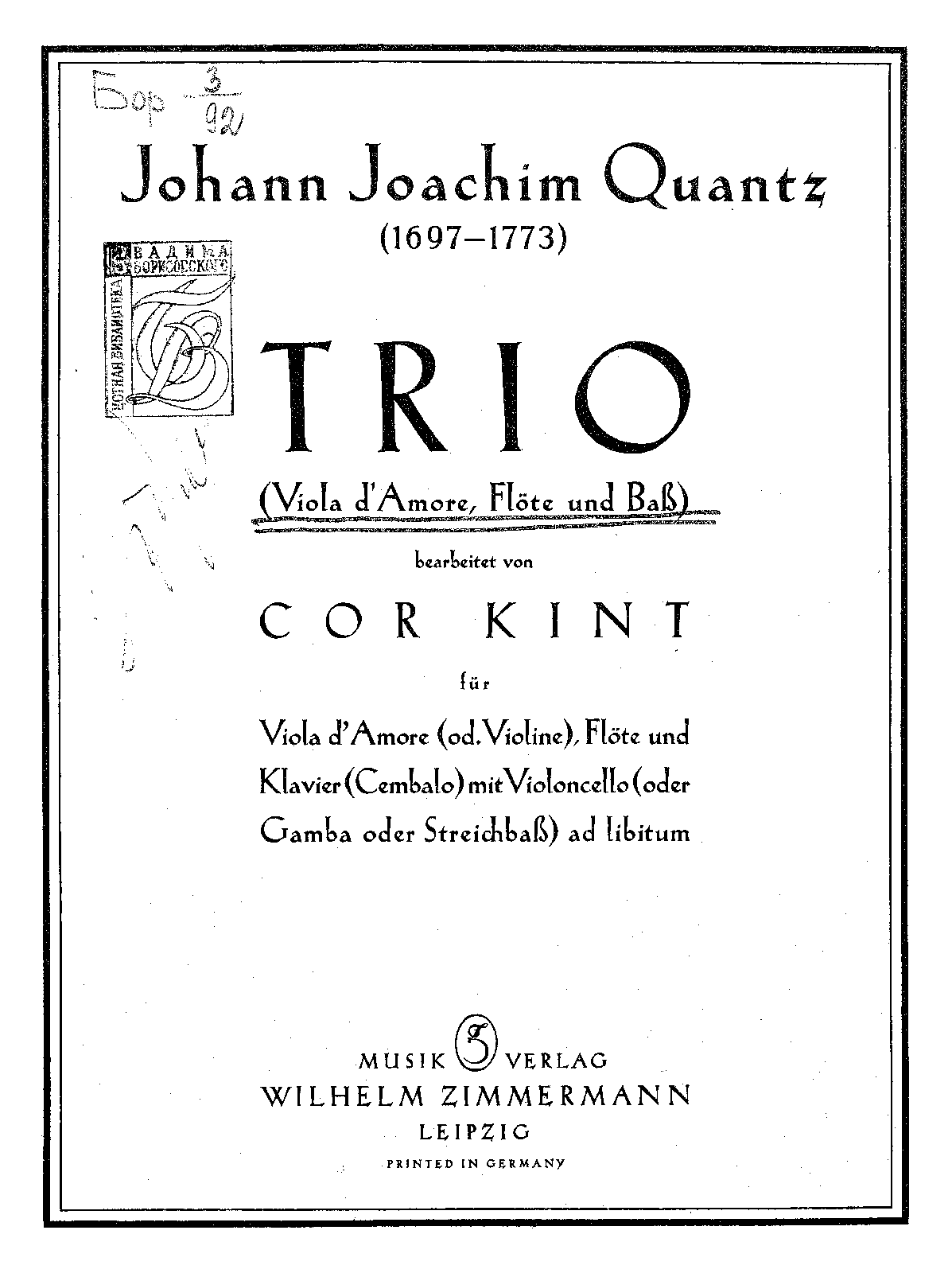 This is not tagged for the flute/violin/continuo version because it is not certain it was done by Quantz himself.