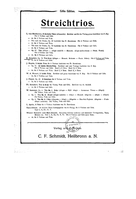 a version for what was once the usual trio makeup (pre-Pichl and Mozart) of 2 violins and cello was published in 1903, also by Schmidt (Monatsbericht (1903), p.263).