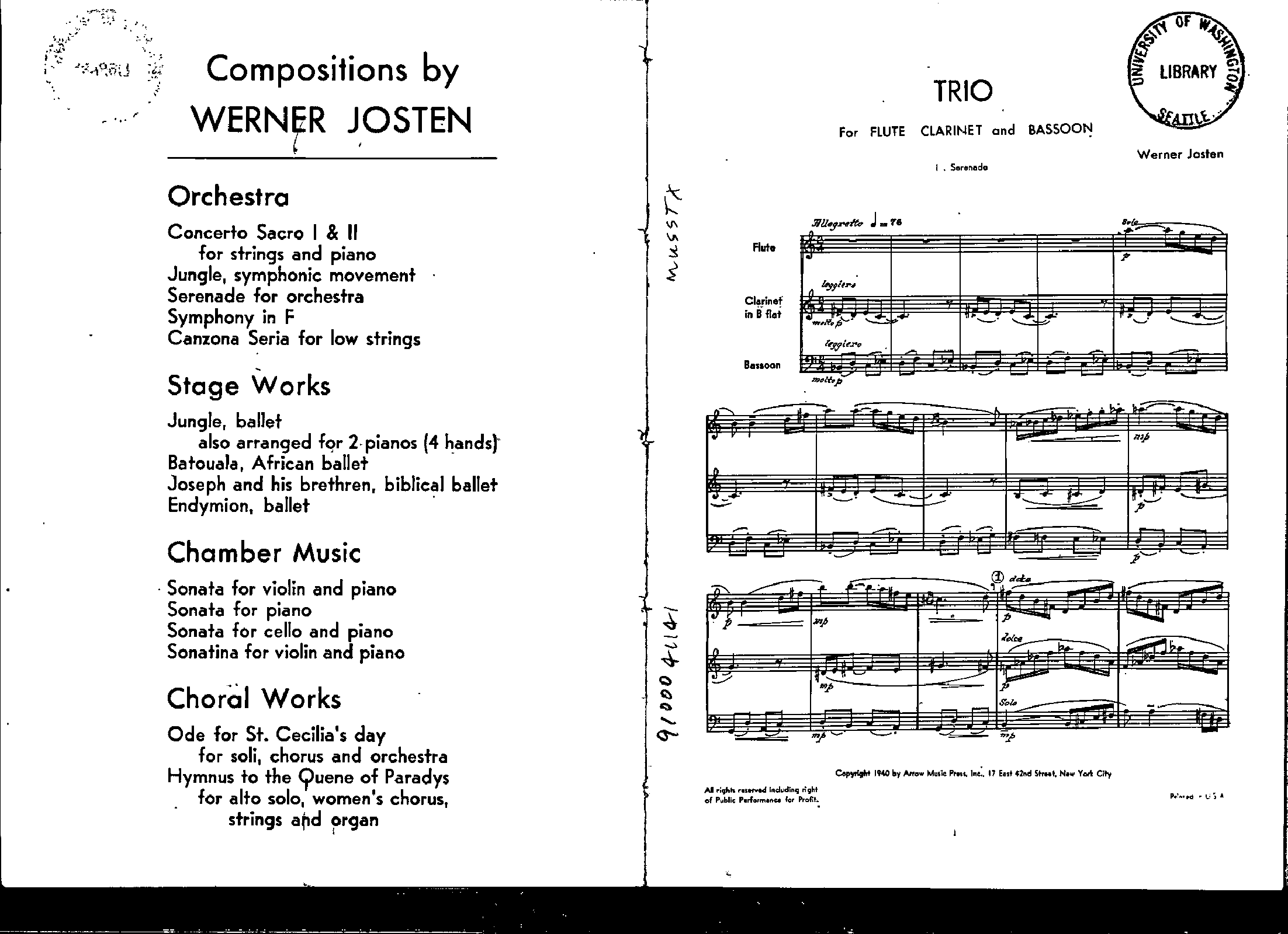 | Genre Categories | Trios; For flute, clarinet, bassoon; Scores featuring the flute; |