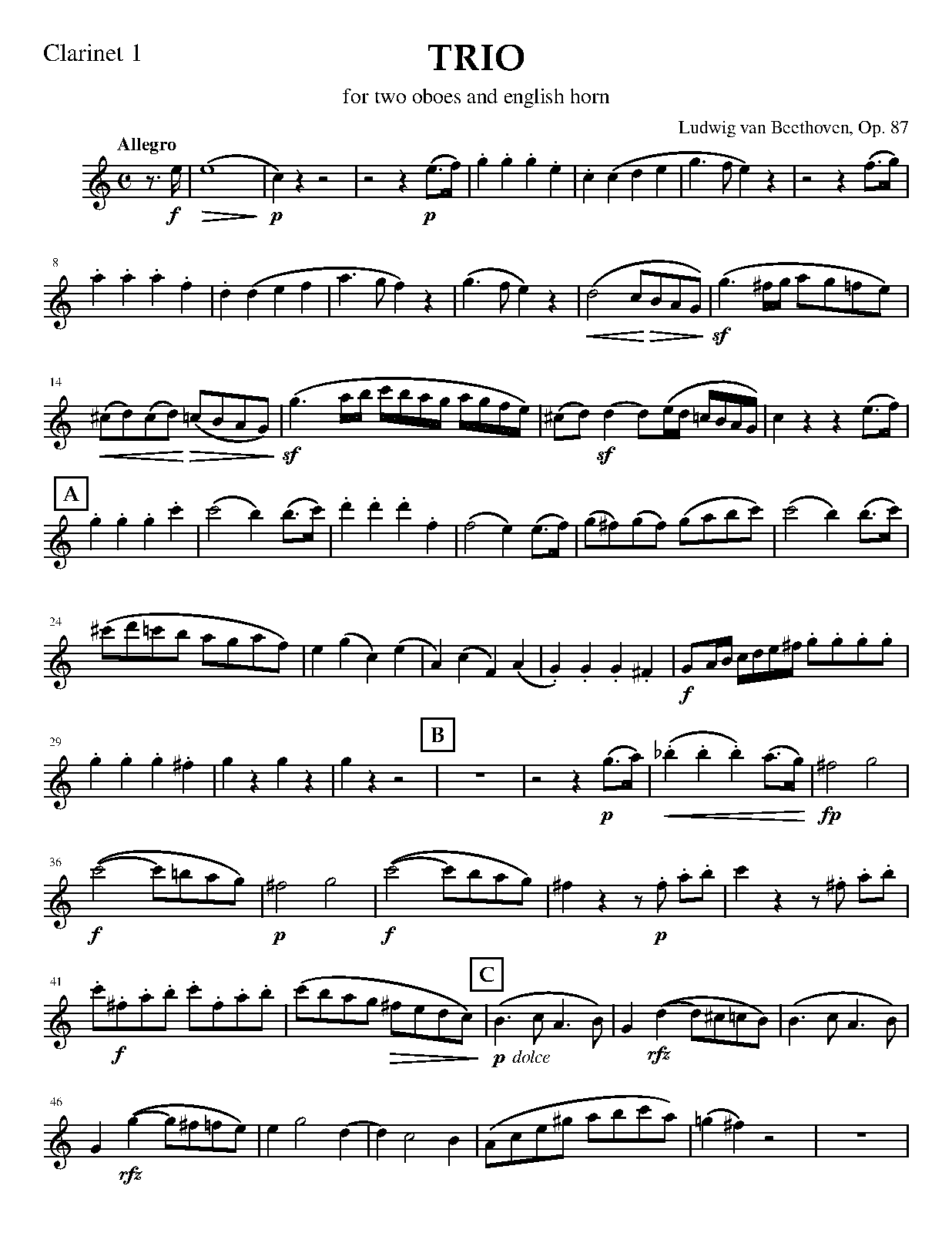 Misc. Notes Use with clarinets (B-fl) playing the original oboe parts. Also suitable for cello and 2 clarinets