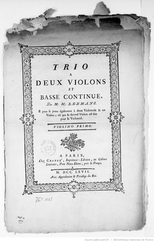 | Alternative. Title | Trio à deux violons et basse continue... Il peut se jouer également à deux violoncels & un violon, vû que le second violon est fait pour le violoncel |