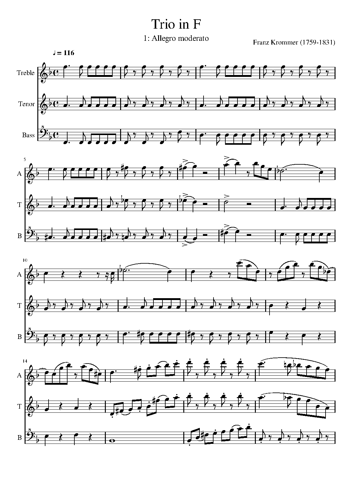 This trio follows the tradition begun by Johann Wenth (Wendt) who in 1793 composed a "new trio for two oboes and cor anglais." The first performance of the Wendt trio was attended by Beethoven who composed Opus 87 three years later for the same combination of instruments. This one by Franz Krommer was composed in that tradition as was the trio by Triebensee. P XII:2 is a sonata for 2 oboes and English horn; P XII:3 is a set of variations for the same instruments.