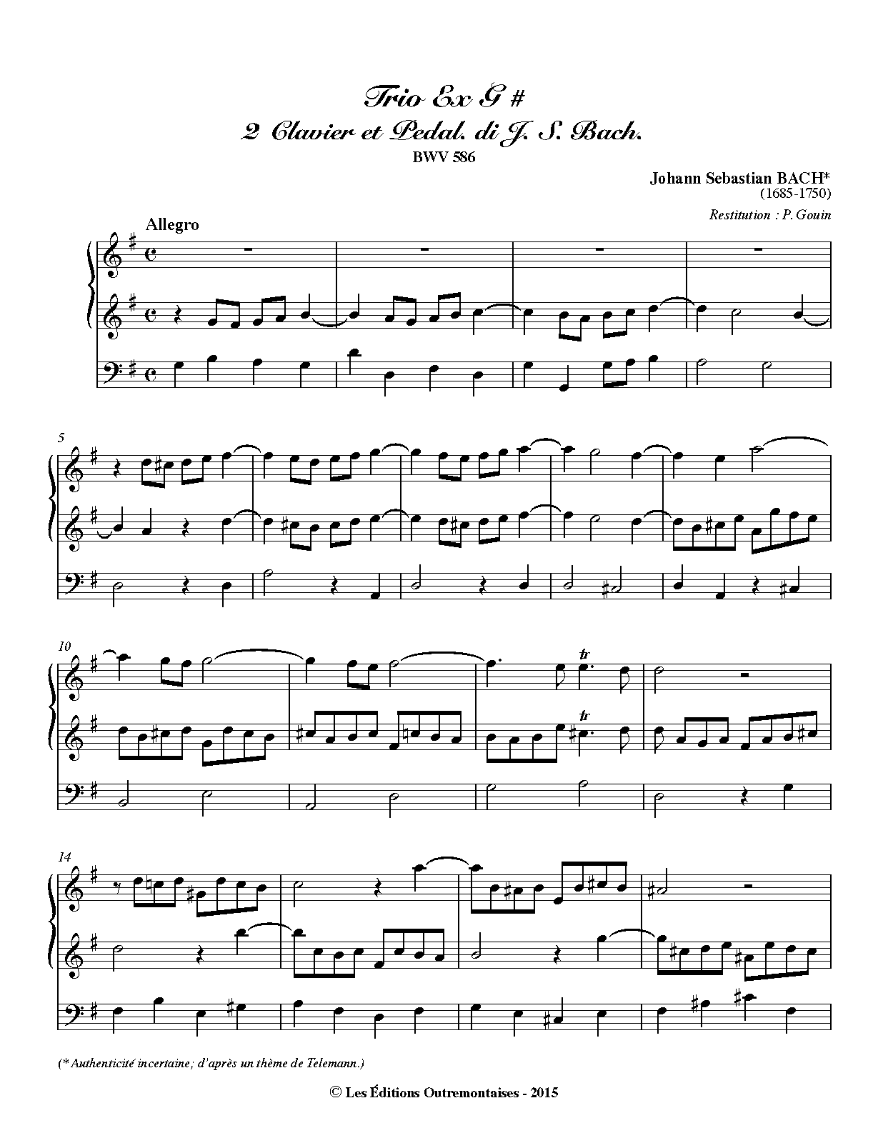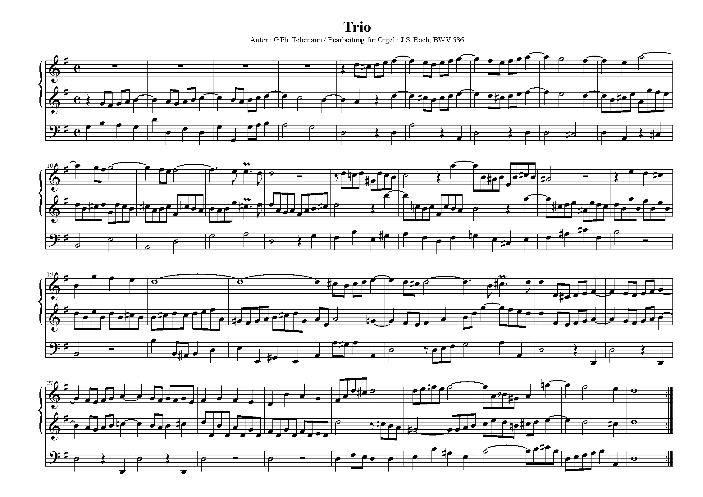 Misc. Notes Autor : G.Ph. Telemann / Bearbeitung für Orgel : J.S. Bach, BWV 586