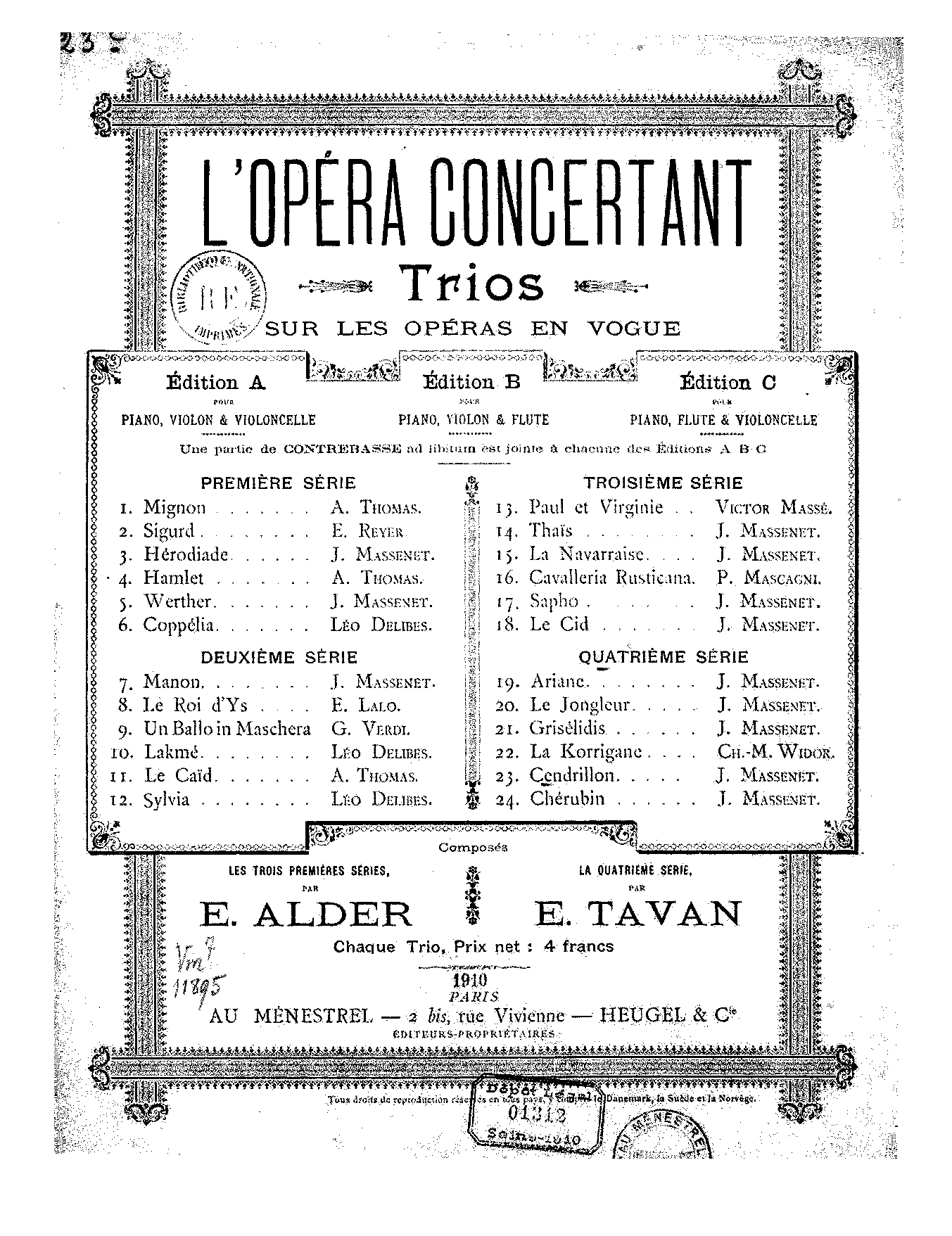 | Alternative. Title | Cendrillon, conte de fées en 4 actes de J. Massenet. Trio. |